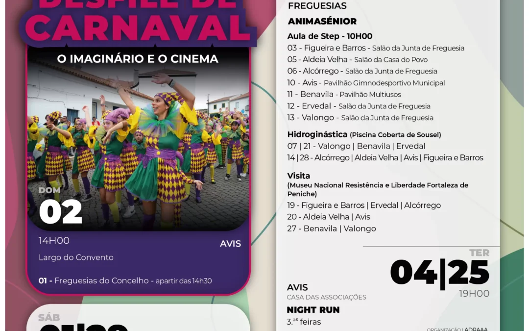 Agenda do Mês – Março 2025 Mar 7, 2024 | Atividade Municipal Está a par? Conheça a programação cultural e desportiva que Avis tem para oferecer, durante o mês de março de 2025.