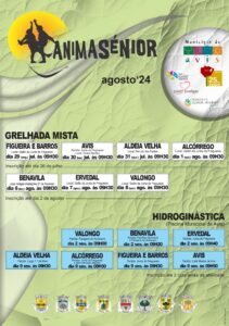 No mês de agosto, o programa Municipal Animasénior promove a realização das atividades “Grelhada Mista” e “Hidroginástica”, em todas as Freguesias/Uniões de Freguesias do Concelho.