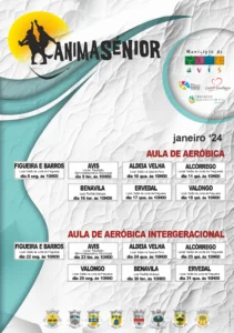 No mês de janeiro, o programa Municipal Animasénior promove a realização de Aulas de Aeróbica e de Aeróbica Intergeracional, para benefício do bem-estar e da saúde junto dos Grupos de todas as Freguesias/Uniões de Freguesias e das crianças do Pré-Escolar do concelho, com momentos de interação e socialização, partilha, convívio e animação entre os mais velhos e os mais novos.