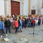 Neste dia, a partir das 14h30, foram muitas as crianças do Pré-escolar e do 1.º Ciclo que, acompanhadas das Professoras e Auxiliares, ali se deslocaram num desfile onde as suas vozes cantaram e encantaram não só o presidente e vereadoras da Câmara Municipal, mas também os trabalhadores da Autarquia presentes.