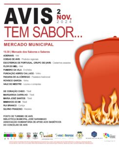 No dia 2 de novembro, a partir das 15h30, a iniciativa “Avis tem sabor…”, traz ao Mercado Municipal de Avis o “Mercado dos Sabores e Saberes”.