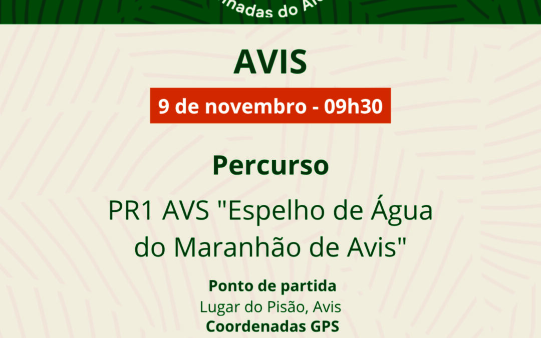 A caminhada corresponde ao percurso integrado na rede de percursos pedestres sinalizados na região: o PR1 AVS “Espelho de Água do Maranhão de Avis”, que tem uma distância de 7,1 km, grau de dificuldade baixo e um tempo estimado de duração entre 2 e 3 horas. Ao longo da caminhada, os participantes terão oportunidade de apreciar locais de interesse como a Albufeira do Maranhão, a pista de remo, o montado de sobro, o olival tradicional, a vista da Vila de Avis, a lagoa rica em avifauna e a Antiga Fonte.