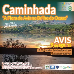 A Caminhada “A flora de Avis no brilho do ocaso” proposta pelo Município de Avis no seu Calendário Anual de Caminhadas e Passeios vai decorrer no próximo dia 9 de agosto, numa iniciativa que terá início, às 18h30, no Jardim Público Municipal, junto ao Quiosque.