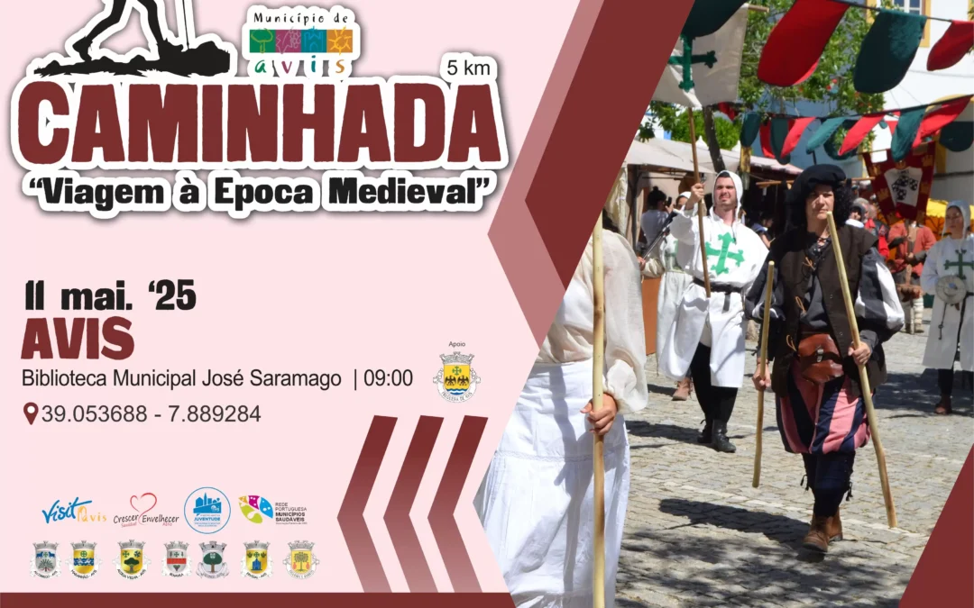 Em maio, a caminhada integrada no Calendário Anual de Caminhadas e Passeios tem lugar no dia 11 de maio e desafia os participantes a uma “Viagem à Época Medieval”, em Avis.