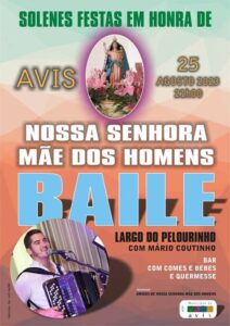 No dia 25 de agosto de 2023, o Largo do Pelourinho, em Avis, acolhe as Solenes Festas em Honra de Nossa Senhora Mãe dos Homens, organizadas pelos Amigos de Nossa Senhora Mãe dos Homens, com o apoio do Município de Avis.