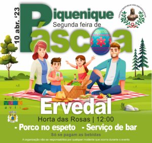 No âmbito da 2.ª Feira de Páscoa, Feriado Municipal, o Centro Republicano Ervedalense organiza, no próximo dia 10 de abril, um Piquenique, com lugar na Horta das Rosas, em Ervedal.