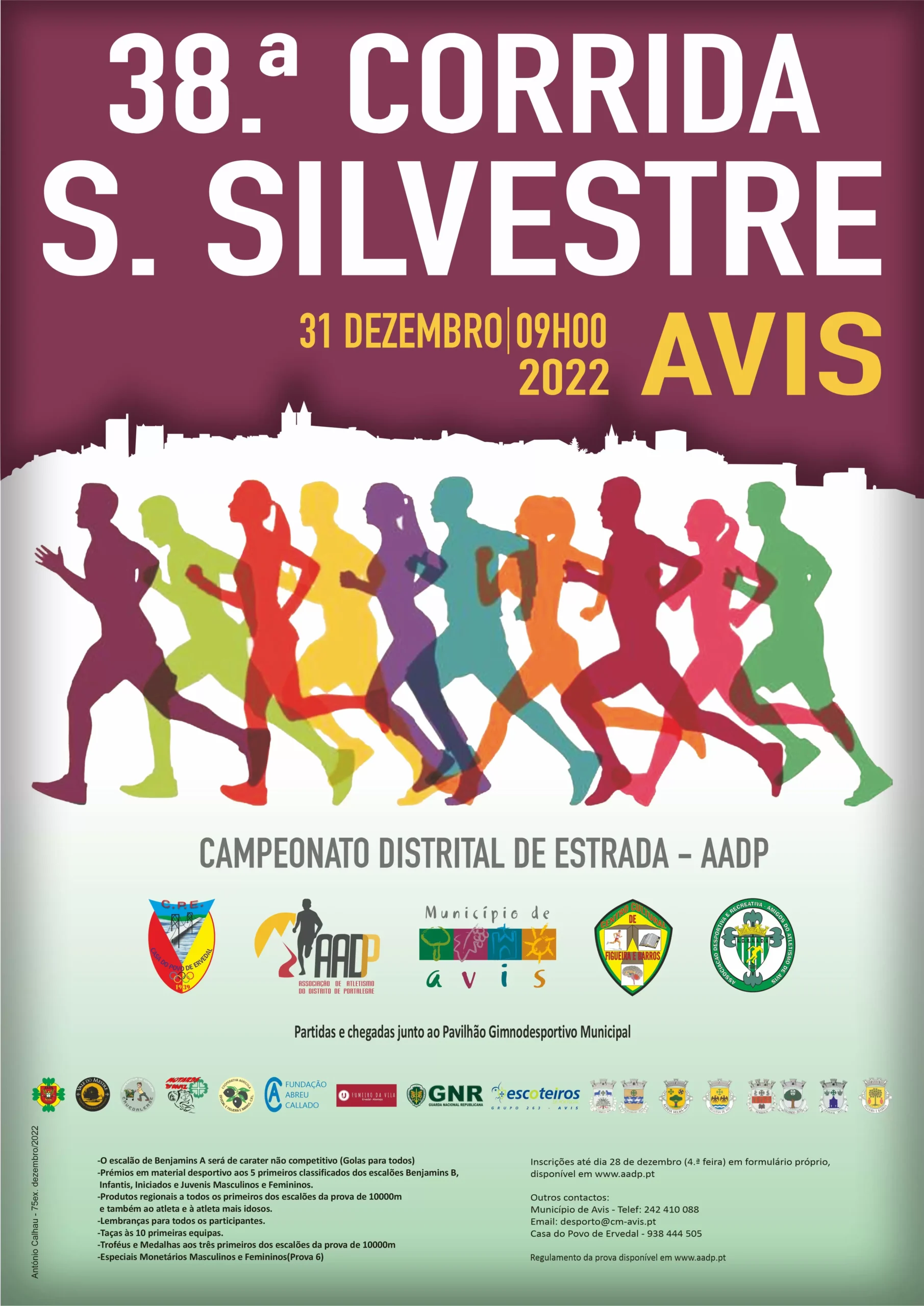 Avis vai receber, no dia 31 de dezembro de 2022, entre as 10h30 e as 13h00, a 38.ª edição da Corrida de S. Silvestre, uma prova de Atletismo organizada pelo Município de Avis, Casa do Povo de Ervedal, Associação Desportiva e Recreativa “Amigos do Atletismo de Avis” e Centro Cultural de Figueira e Barros, com a colaboração técnica da Associação de Atletismo do Distrito de Portalegre (AADP).