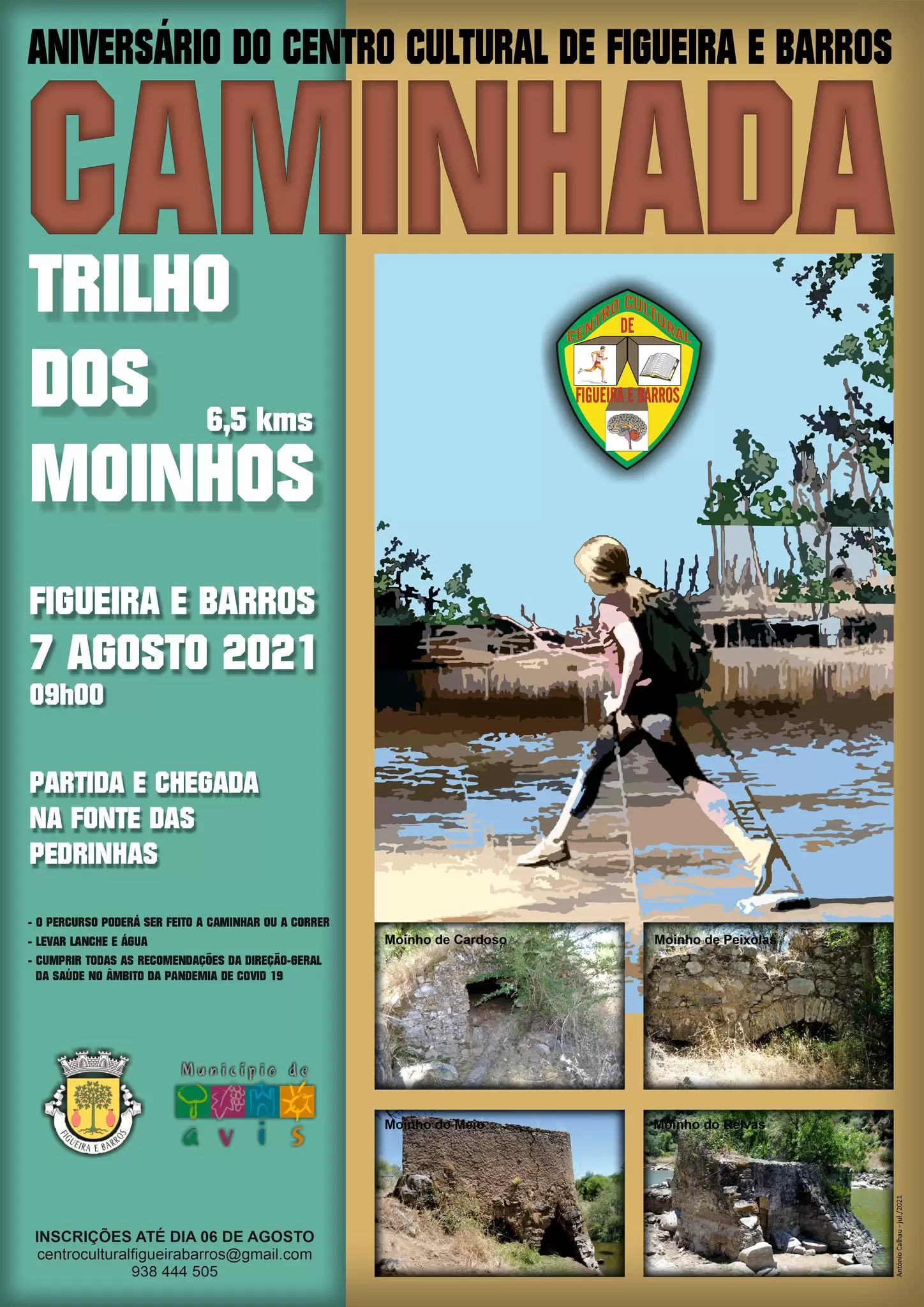 As inscrições na Caminhada serão efetuadas em: centroculturalfigueirabarros@gmail.com e através do telefone 938 444 505, até ao dia 6 de agosto.