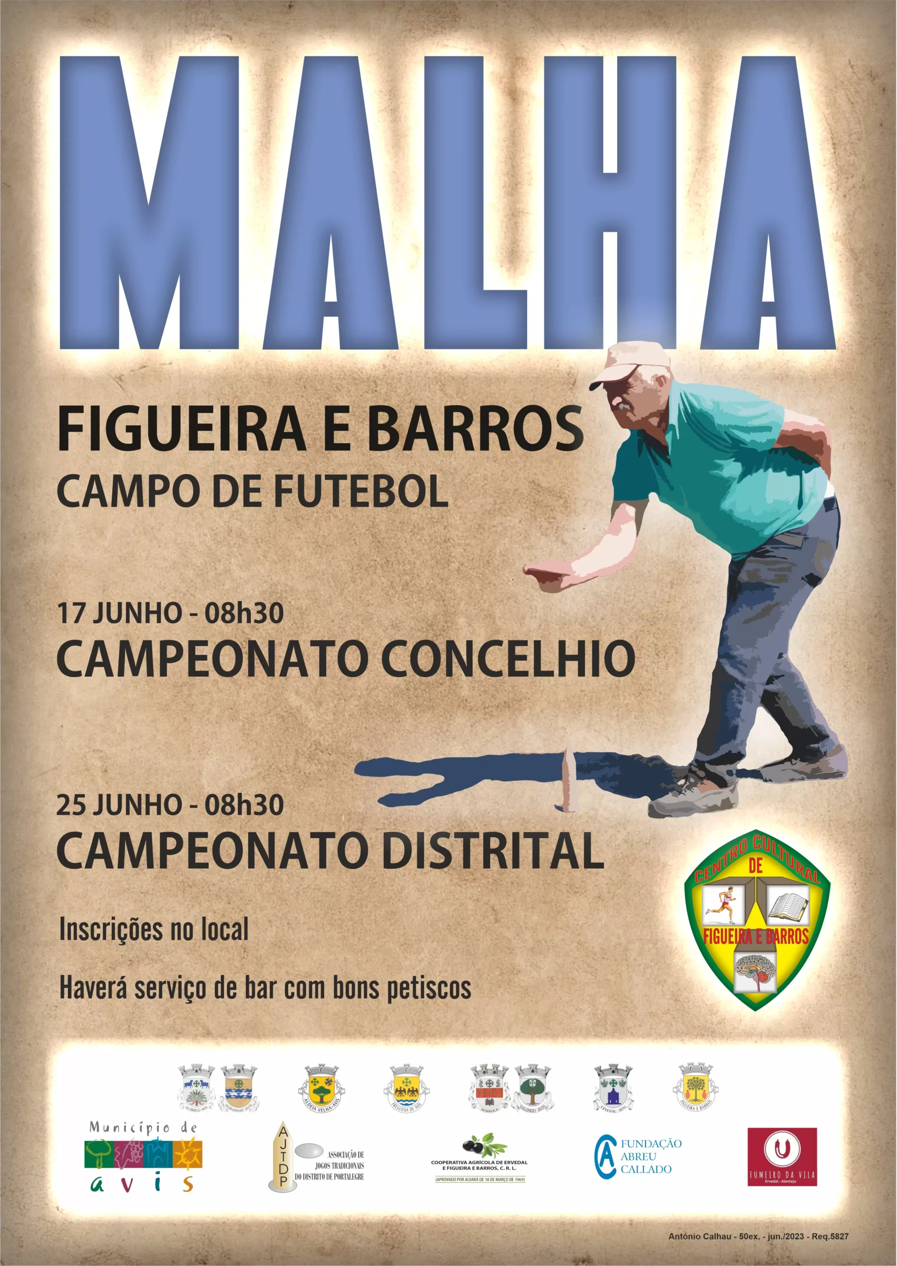 O Campeonato Concelhio da Malha 2023 prossegue em Figueira e Barros, no dia 17 de junho, a partir das 08h30, com o segundo jogo desta ronda, que percorre as Freguesias/Uniões de Freguesias do Concelho, a decorrer no Campo de Futebol de Figueira e Barros.