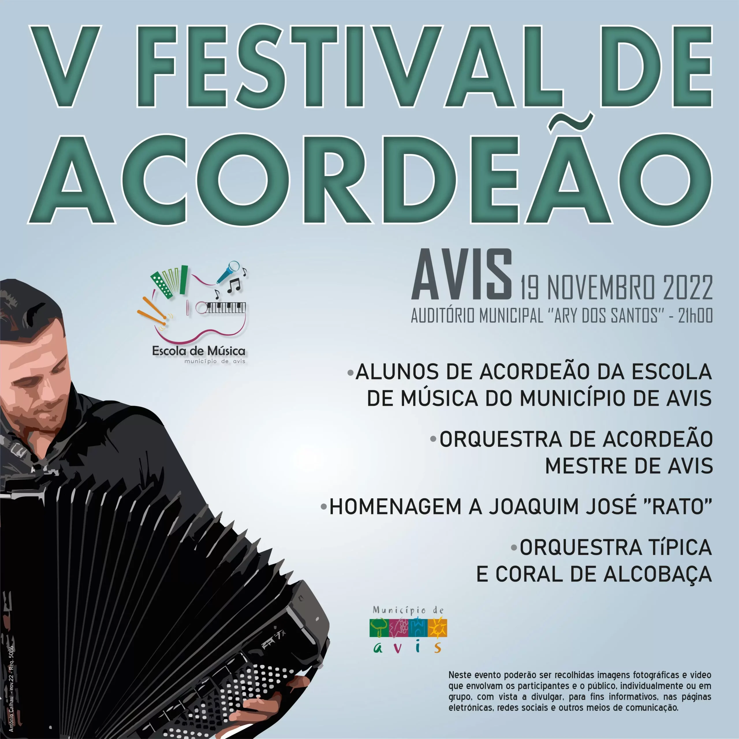A participar neste evento, organizado pelo Município de Avis, estarão os Alunos de Acordeão da Escola Mestre de Avis, a Orquestra de Acordeão Mestre de Avis e a Orquestra Típica e Coral de Alcobaça.