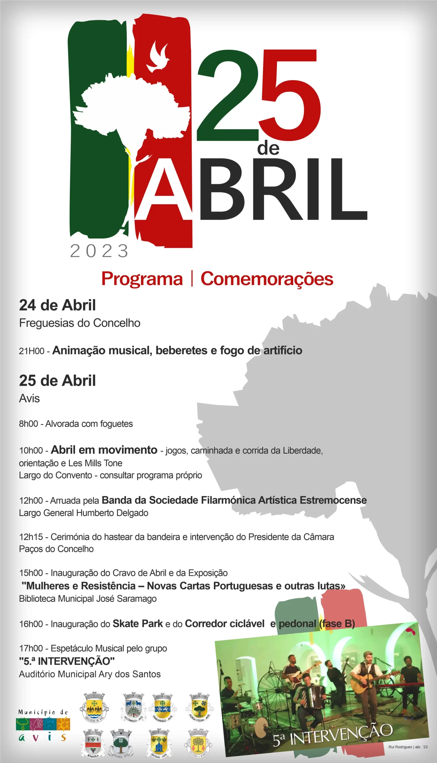 No dia 25 de Abril, depois da Alvorada com foguetes e da animação desportiva, que ganha ritmo logo a partir das 10h00, com a iniciativa “Abril em movimento”, haverá então lugar às habituais comemorações oficiais com a arruada pela Banda da Sociedade Filarmónica Artística Estremocense que partirá, do Largo General Humberto Delgado, em marcha pelas […]