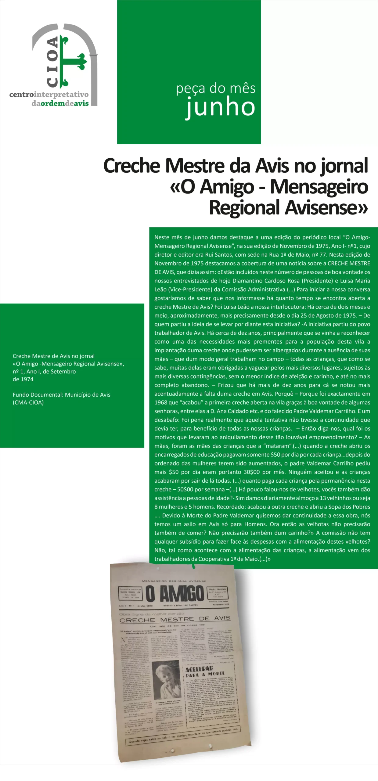 Creche Mestre de Avis no Jornal «O Amigo – Mensageiro Regional Avisense» em “Peça do Mês”