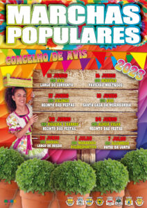 A edição de 2023, a decorrer de 10 de junho a 7 de julho, em todo o Concelho, irá ter o seu momento alto, no dia 10 de junho, pelas 21h00, no Largo do Convento, em Avis, com a participação de todos os marchantes no Grande Desfile, evocativo das temáticas, factos, personagens e outros aspetos tradicionais do Concelho de Avis, que proporcionará um espetáculo cheio de movimento, alegria e cor, à população que habitualmente assiste às coreografias.