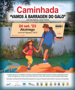 Na próxima Caminhada “Vamos à Barragem do Galo”. A iniciativa, de comemoração do Dia Mundial dos Rios, vai realizar-se no dia 24 de setembro, às 9h00, em Alcórrego.
