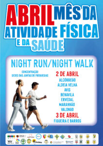 A Night Run e a Night Walk, “Movimenta-te pela Tua Saúde”, integradas no Mês da Atividade Física e da Saúde, vão decorrer nos dias 2 e 3 de abril, em todas as Freguesias/Uniões de Freguesias do Concelho, tendo como principal objetivo a sensibilização da população para Estilos de Vida Mais Saudáveis.