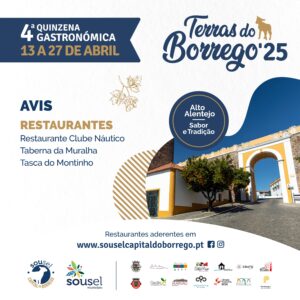 Os restaurantes “Clube Náutico”, “Taberna da Muralha” e “Tasca do Montinho” aderiram à 4.ª Quinzena Gastronómica Terras do Borrego’25, que decorre de 13 a 27 de abril.
